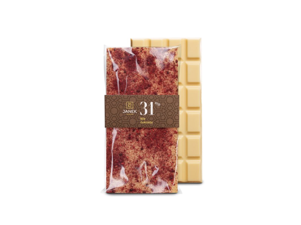 Biela čokoláda s drvenými lyofilizovanými malinami a černicami