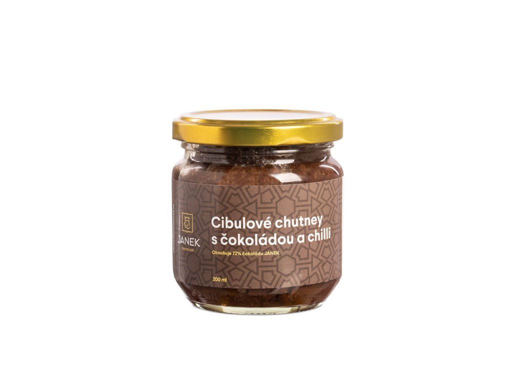 Zloženie: červená cibuľa (76 %), trstinový cukor, balzamikový ocot (vínny ocot, varený hroznový mušt, obsahuje siričitany), vínny ocot, horká čokoláda 100 %, cukor (3 %), chilli (0,3 %), korenie, citrusový pektín