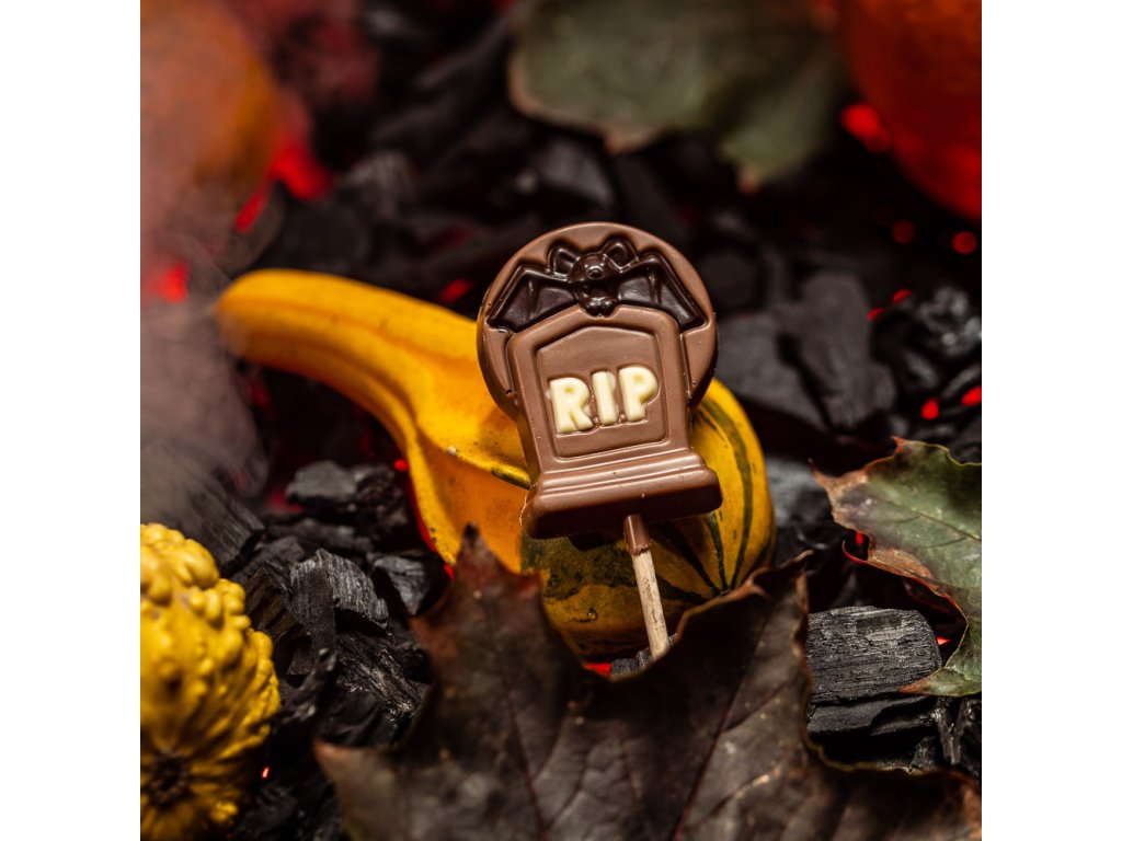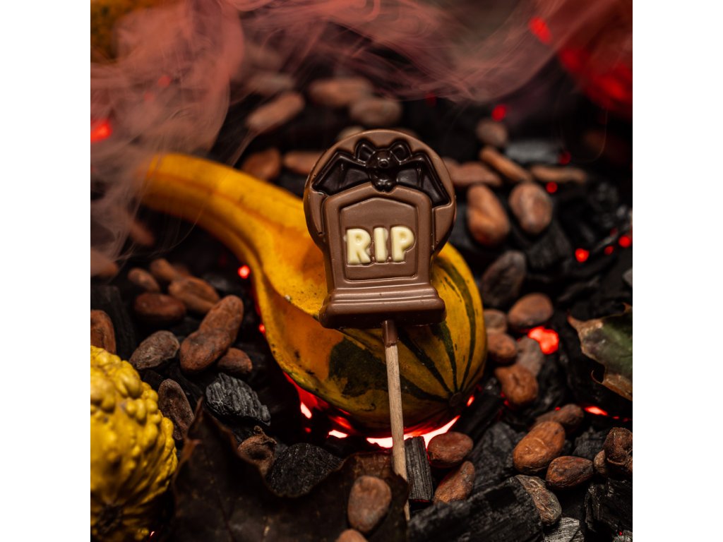 Čokoládové lízatko v tvare náhrobného kameňa je našou odpoveďou na to, ako si nezašpiniť ruky od čokolády. Kvalitná čokoláda s vôňou vanilky. Bez príchutí a esencií. Ale pravé vanilkové zrnká. Vonia, chrumká a pomaly sa rozplýva na jazyku.
