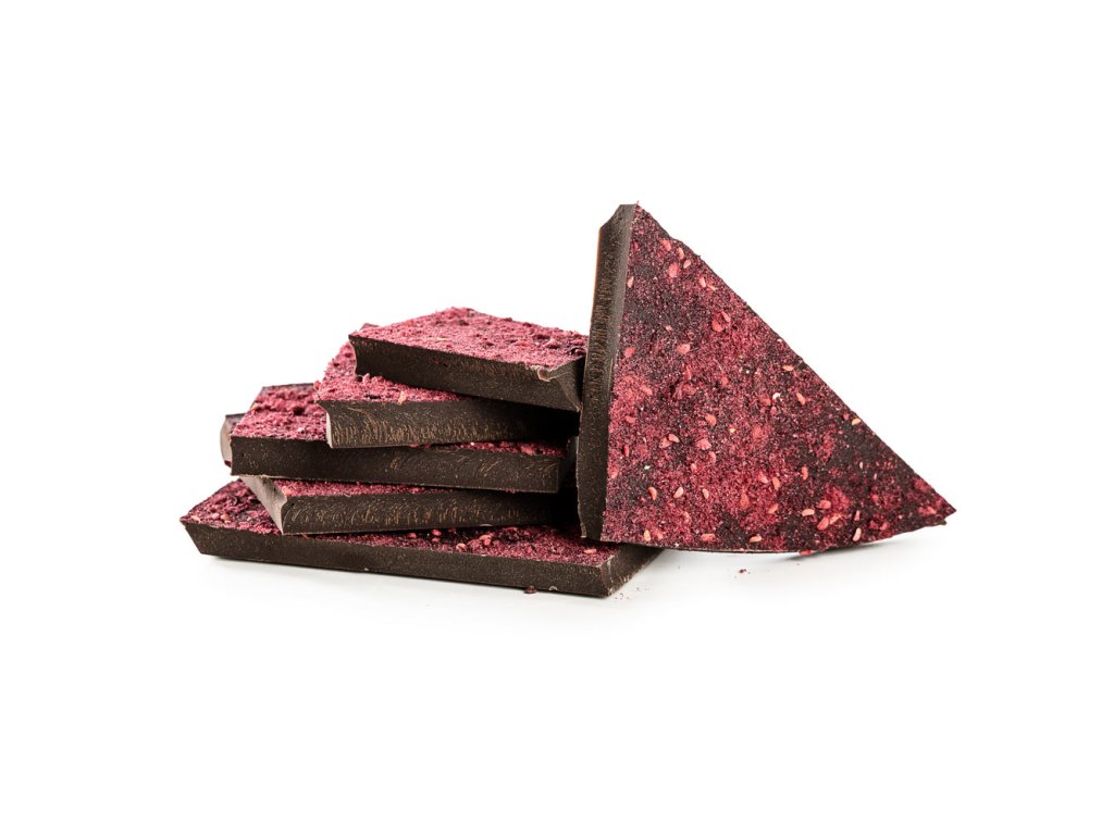 Drvené lyofilizované maliny a černice - lámaná horká čokoláda 250g