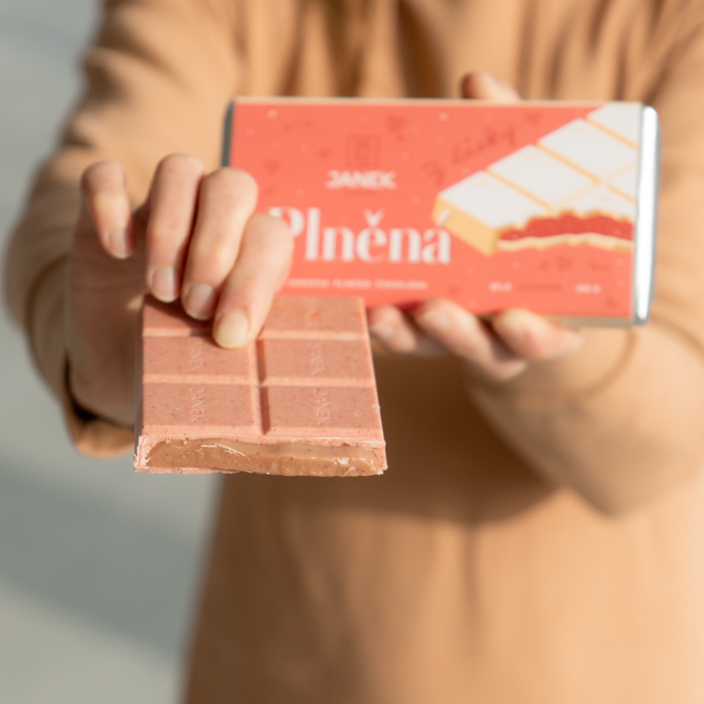 Rovnako ako ostatné plnené čokolády z čokoládovne JANEK vzniká aj táto tabuľka ručne as dôrazom na kvalitu surovín, bez zbytočností as rešpektom na chuť. Elegantný obal s jemnými ilustráciami nadväzuje na existujúcu kolekciu a podčiarkuje charakter tejto čokolády – ľahký, hravý a radostný.