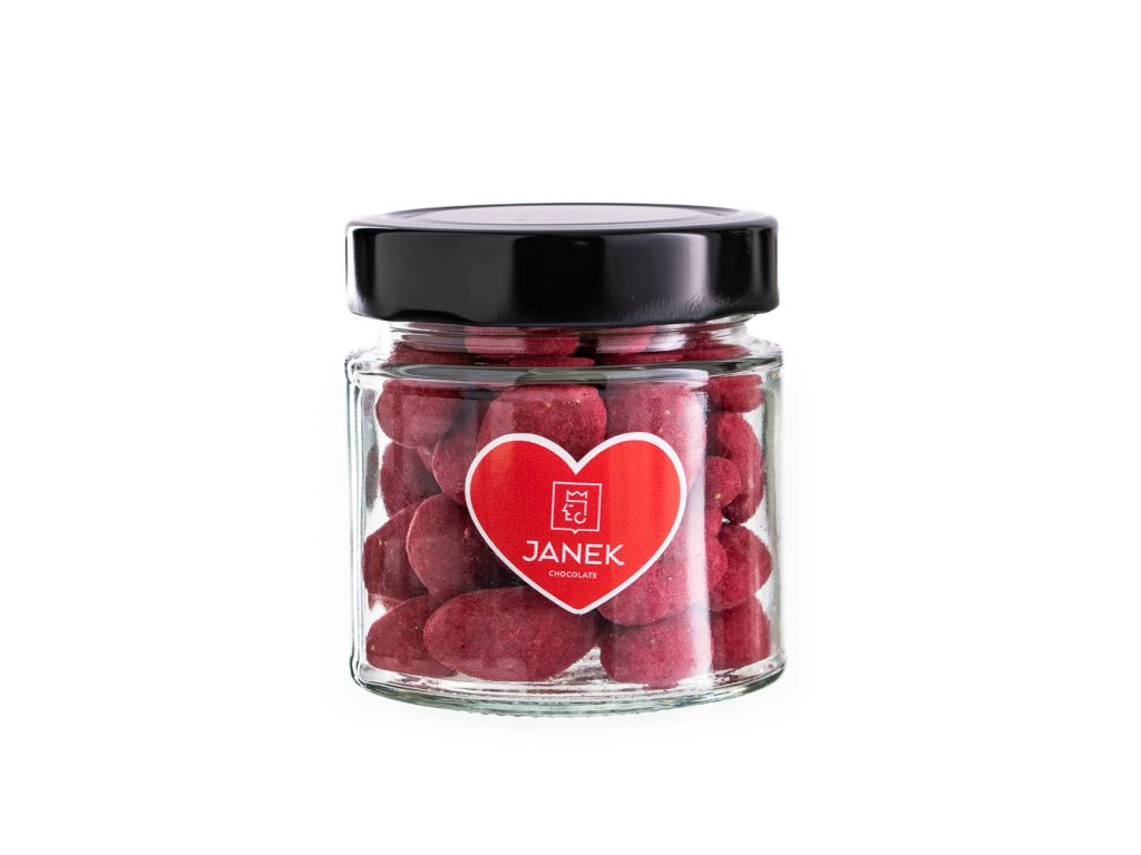 Kiež by nie, keď je to taká lahôdka. Mandle sme poriadne vykúpali v našej špeciálnej bielej jahodovej a malinovej čokoláde. Keď ju ochutnáte, budete sa chcieť okúpať tiež. Budú sa vám zbiehať sliny.