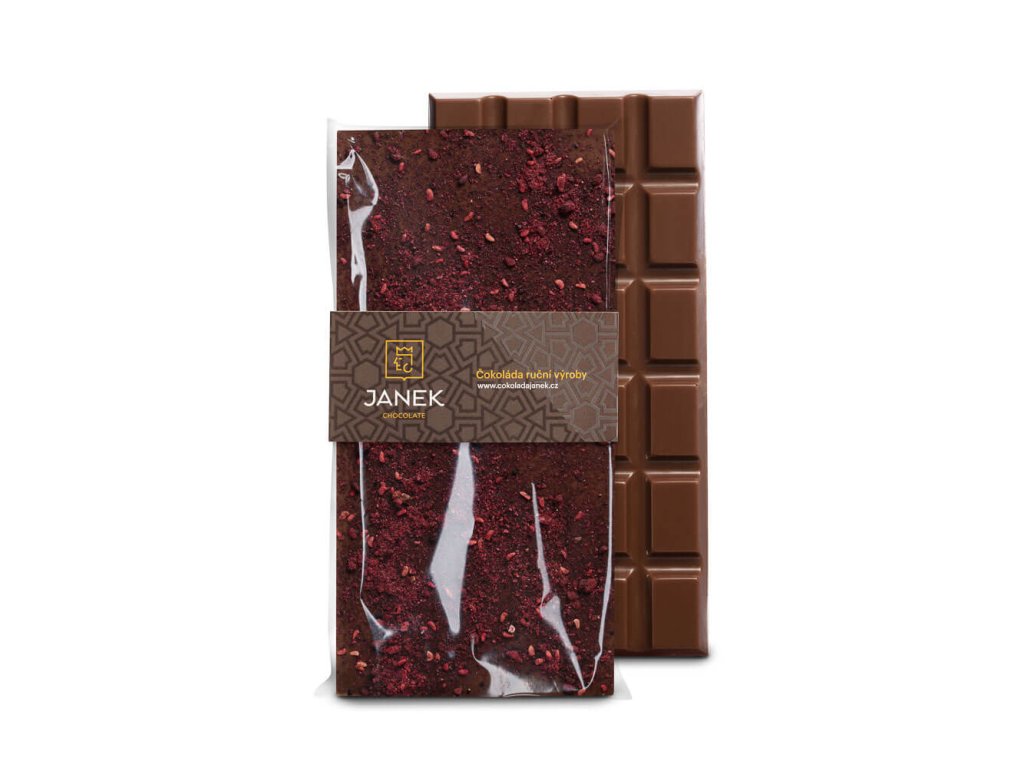 Mliečna čokoláda s rozdrvenými lyofilizovanými malinami a černicami