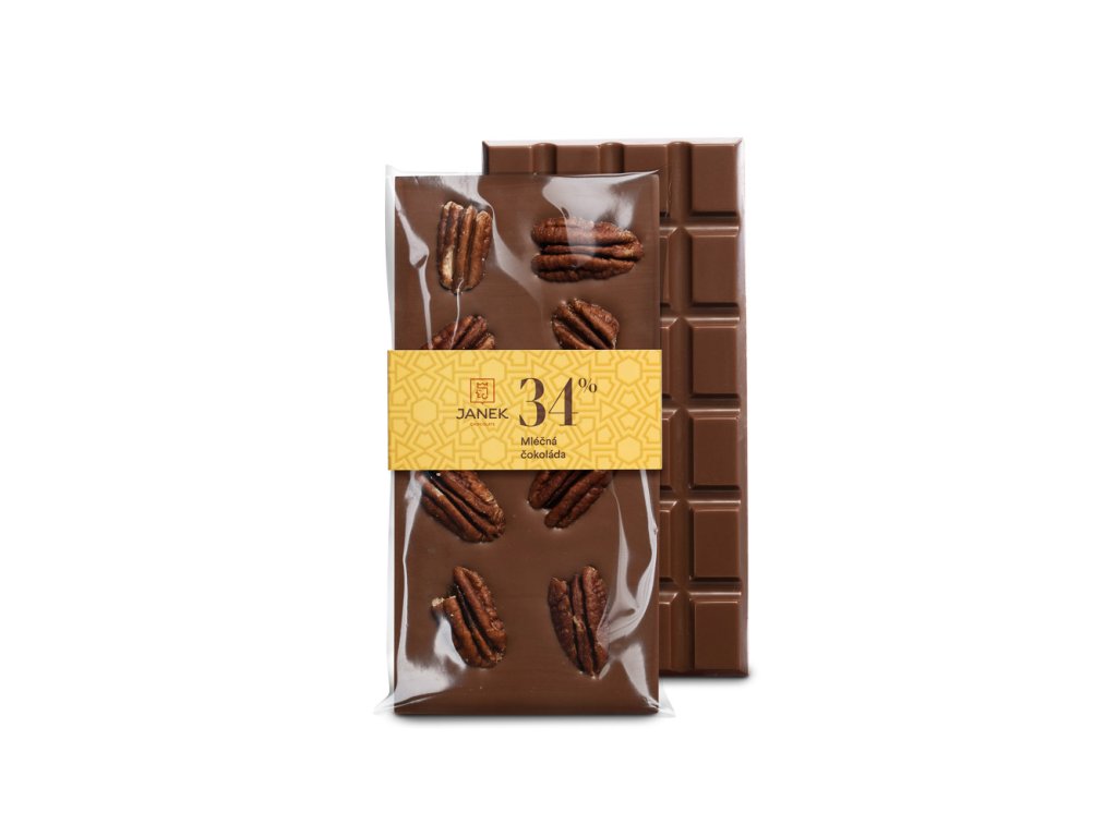 Zloženie: kakaová hmota 34 %, kakaové maslo, sušené mlieko, pekanové orechy (10 %), cukor, emulgátor: sójový lecitín, aróma: prírodná vanilka.