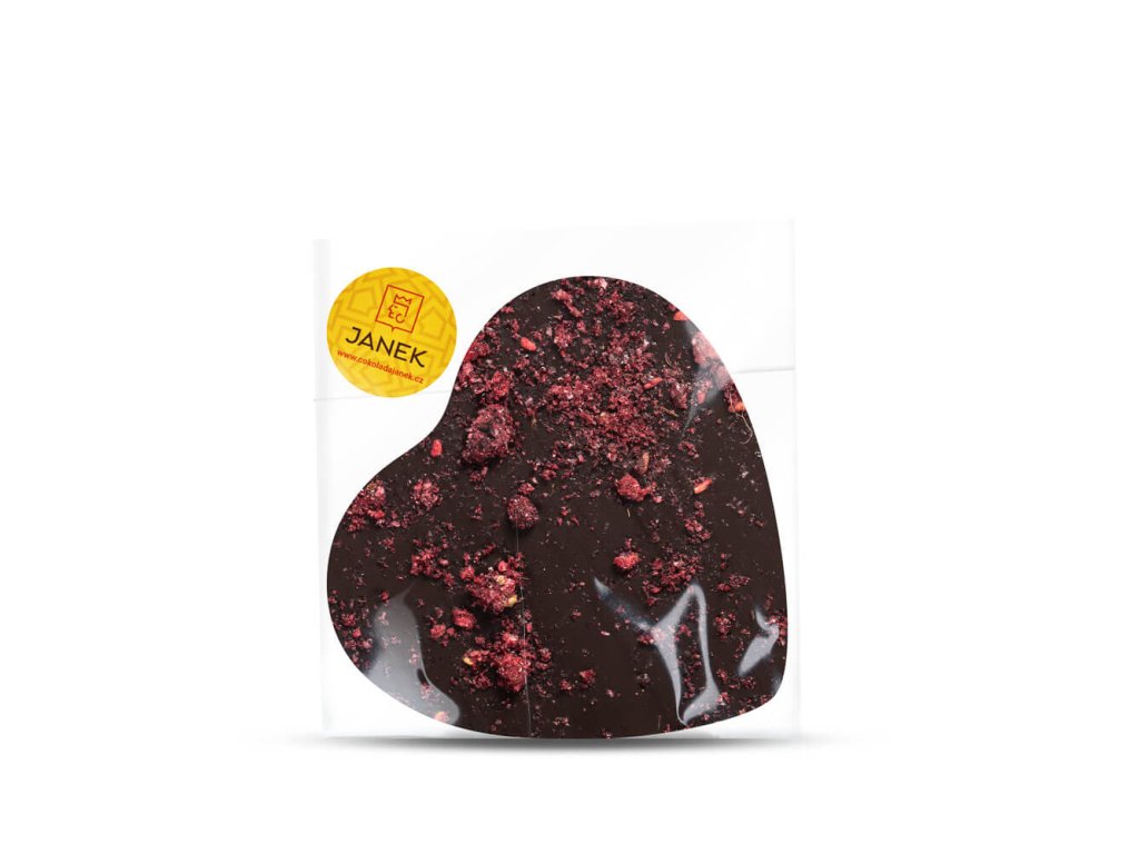 Veľké srdce z tmavej čokolády s drvenými lyofilizovanými malinami a černicami