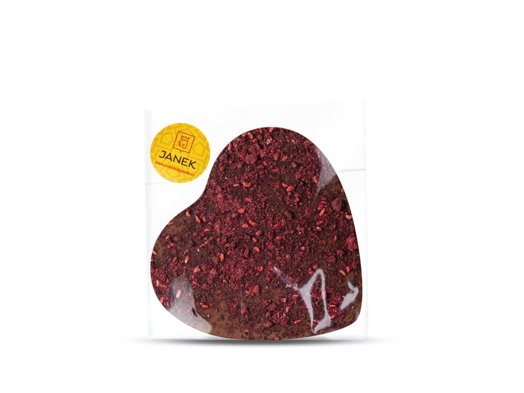 Veľké srdce z mliečnej čokolády s drvenými lyofilizovanými malinami a černicami