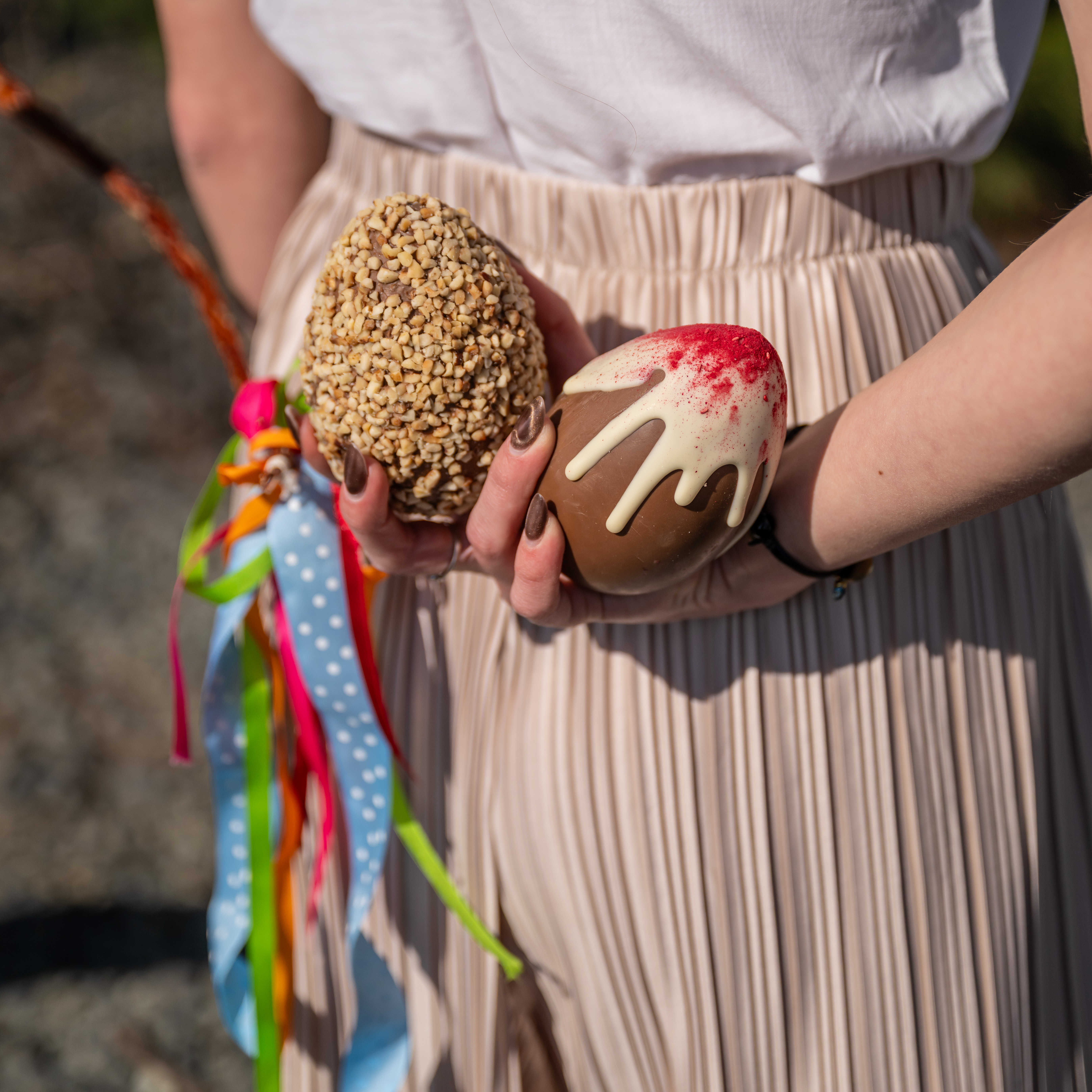 Veľká noc je ideálnou príležitosťou potešiť seba aj svojich blízkych niečím naozaj výnimočným – a presne také je naše veľkonočné čokoládové vajce s veľkosťou 11 cm. Ručne vyrábané z poctivej mliečnej čokolády, s láskou zdobené a doladené do posledného detailu, aby potešilo nielen chuťové poháriky, ale aj oči. Už na prvý pohľad je jasné, že toto nie je len tak obyčajné vajce.