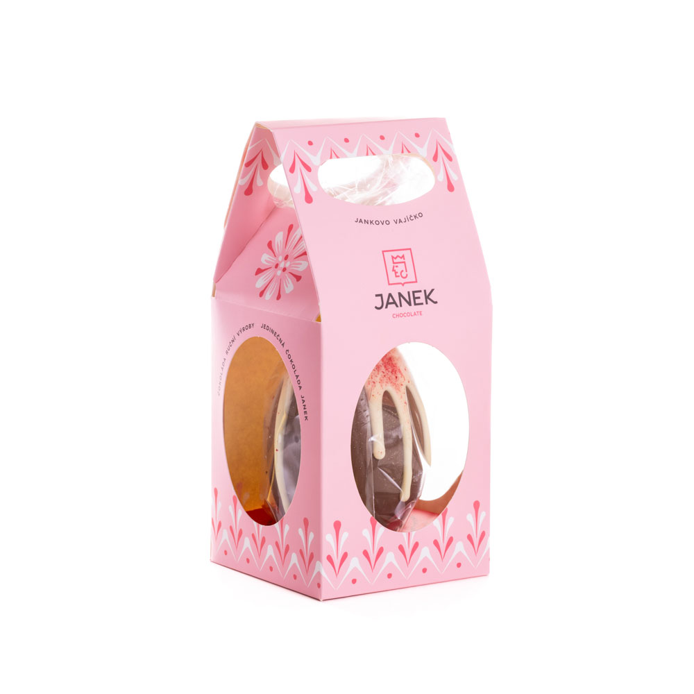 Každý kúsok vzniká ručne v našej čokoládovni podľa osvedčeného postupu, ktorý používame aj pri ďalších plnených veľkonočných vajciach. Najskôr pripravíme kvalitnú čokoládovú škrupinu, potom starostlivo nanesieme malinový krém, všetko uzavrieme, ozdobíme bielou čokoládou a malinami – a nakoniec zabalíme do elegantnej ružovej krabičky.